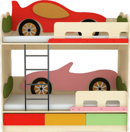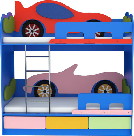 Филатoff, фабрика мягкой мебели / Каталог / Детская мебель / Двухъярусная кровать «Кабриолет/Л-Машинка/К»