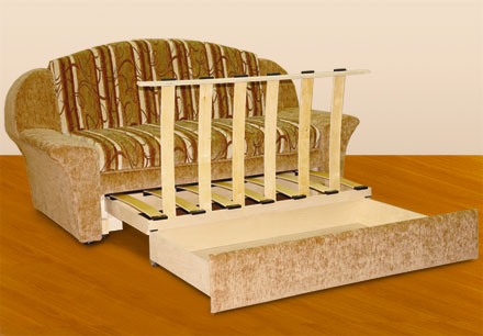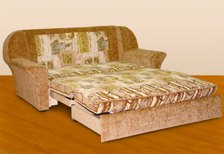 Габариты (ШхГхВ), мм: 1700х870х940. Спальное место, мм: 1950х1260. Каркас - хвойные породы древесины, многослойная березовая фанера. Механизм трансформации «Выкатной». Спинка - настил ППУ. Сиденье - ортопедические латы, настил ППУ. Спальное место - ортопедические березовые латы, настил ППУ. Бельевой ящик - белое ламинированное ДВП. Обивка - под заказ. Опоры - пластиковые изделия.