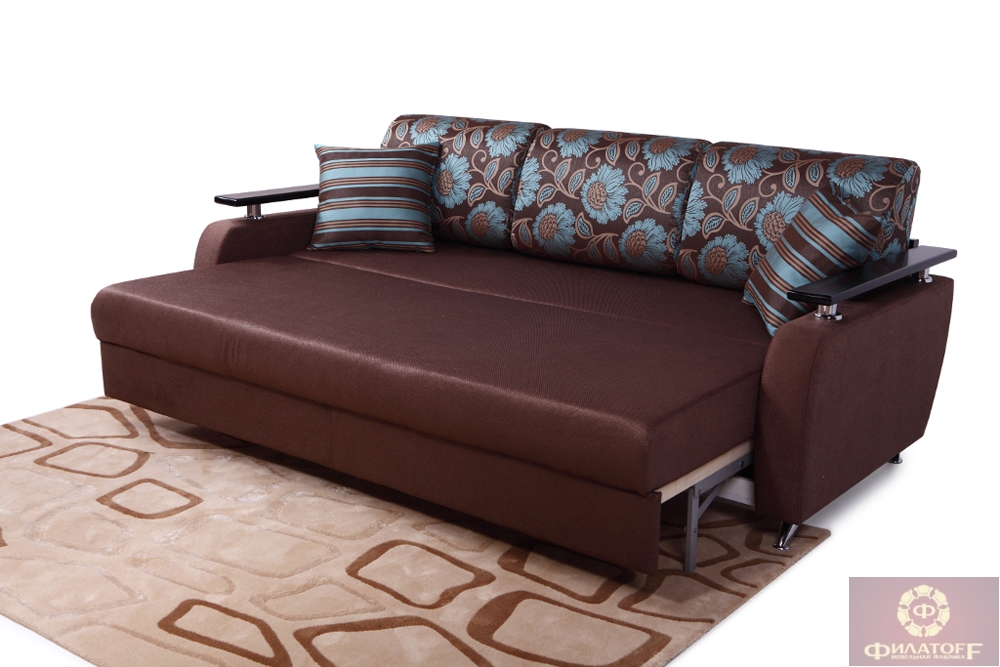 Длина: 2250 мм Глубина: 1060 мм Размер спального места: 2000*1500 мм Высота с подушками: 900 мм Высота сиденья: 450 мм  Индивидуальность дивана «Орион» достигается за счет оригинальных округлых форм дивана и использования разных фактур материалов: блеска хромированных поверхностей и тепла благородного массива бука. Яркая особенность в дизайне этого  дивана – оригинальные подлокотники, деревянный декор которых располагается необычным образом на металлических ножках. Не лишен диван и практичного функционализма - у модели большое спальное место и вместительный ламинированный ящик для белья.