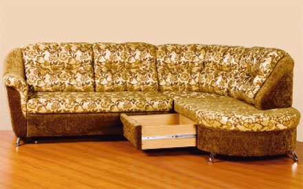 Габариты дивана (ШхГхВ), мм: 2550х2050х980. Спальное место, мм: 1950х1250. Габариты кресла (ШхГхВ), мм: 1000х900х980. Каркас - хвойные породы древесины, многослойная березовая фанера. Механизм трансформации «Дельфин», на каждый день, надежный, легко раскладыватся. Спинка - основа жесткие эластичные ремни, наполнитель синтепух. Сиденье - основа пружина «Змейка», настил ППУ. Бельевой ящик - ламинированное ДСП, механизм полного выката, максимальная нагрузка 25 кг. Обивка - под заказ (шенил, флок). Опоры - никелированные металлические изделия. Стоимость мебели зависит от выбранной обивки. Цены на сайте могут отличаться от действующих. Точную стоимость мебели уточняйте в салоне.