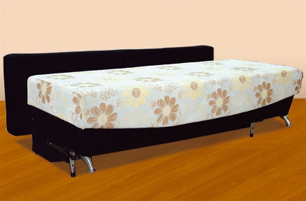 Габариты (ШхГхВ), мм: 2030х990х760. Спальное место, мм: 2030х1400. Каркас - хвойные породы древесины, многослойная березовая фанера. Механизм трансформации - «ТИК-ТАК», на каждый день, надежный, легко раскладывается. Спинка и сиденье- пружинный блок, настил ППУ. Бельевой ящик - белое ламинированное ДВП. Обивка - под заказ. Опоры - хром-металл.